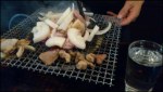 夕食は、カルビ焼肉、麻婆豆腐等でした。食後に島美人。